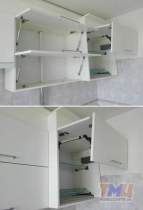 - Цоколь ПВХ «алюминий», ручки AL 1399, сушка из нержавеющей стали 800 мм, шариковые направляющие GTV, газовые лифты, подъемником «Авентос» фирмы «Blum», карго хромированное 2-х уровненное 200 мм.