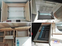 - Ручки релинг сатин, сушка из нержавеющей стали 800 мм, шариковые направляющие GTV, газовые лифты, подъемником «Авентос» фирмы «Blum», карго хромированное 2-х уровненное 150 мм.
