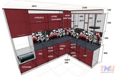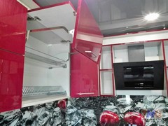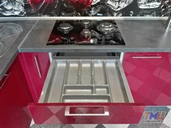 - Цоколь ПВХ алюминий, ручки 819 хром матовый, сушка из нержавеющей стали 800 мм, шариковые направляющие GTV, газовые лифты, механическим подъемник фирмы «Kessebohmer», карго хромированное 2-х уровненное 200 мм. Полка для фруктов 116-03, полка для бокалов 116-07.