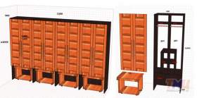 Комплект мебели в раздевалку ТМКД-0017Комплект мебели в раздевалку. Общее описание. текст Наполнение шкафа. текстМатериал и фурнитура. текст