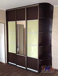 Встроенный шкаф-купе с тремя дверями. Фасад: лакобель, зеркало, кожа.