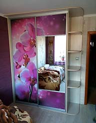 Шкаф-купе с двумя дверями. Фасад: стекло с фотопечатью и зеркало.