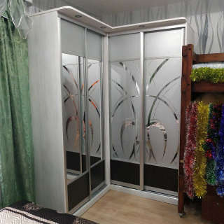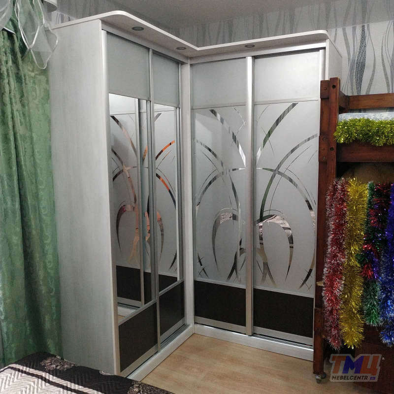 Угловой шкаф-купе с подсветкой и пескоструем.